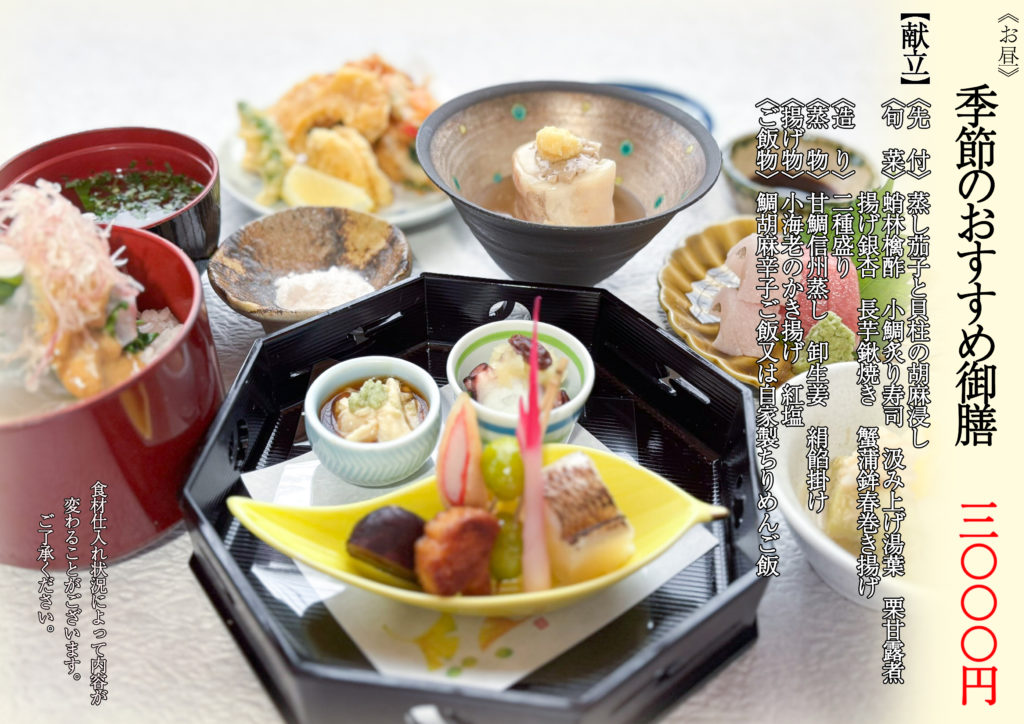 「季節のおすすめ御膳」と「季節の逸品」をご用意いたしました。